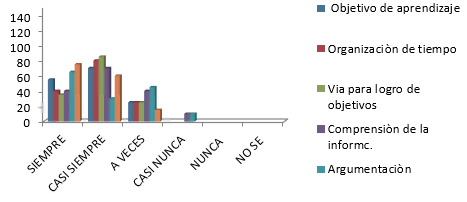 De la misma manera se destaca que para los estudiantes, en su generalidad siempre valoran su aprendizaje y se fijan nuevas metas así también argumenta y defiende sus ideas de forma sólida.