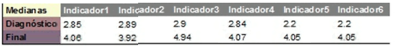 Como se constató (tabla 3 y 4) en la comparación los indicadores en el diagnóstico no rebasaron el nivel 3 en contrate con los resultados final que los indicadores sobrepasaban el nivel 4.