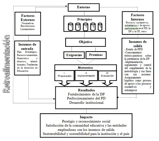 Según (Alcívar, 2016; Alpízar, 2013; Batista, 2016; Bringas, 1999; Galarza y Almuiñas, 2010; González, 2016 y Gutiérrez et al., 2016) al analizarse una IES como un todo, es importante tener en cuenta la interrelación entre los procesos estratégicos, sustantivos y de apoyo que se desarrollan en cada nivel de la pirámide de dirección. Todos ellos tributan al cumplimiento de los objetivos de la organización en aras de obtener mejores resultados, tal que, en su gestión se puedan hallar espacios para el desarrollo de la DP.