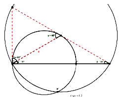 En este tipo de problemas es conveniente realizar varios esbozos de la figura hasta tener algunas ideas acerca de los hechos geométricos que pudieran tener lugar y que pueden sugerir ideas de cómo enfrentar el problema. En primer lugar, se debe reflexionar acerca del orden más adecuado a la hora de realizar la construcción de la figura. Consideramos aconsejable, construir primero la circunferencia w, para luego trazar la línea tangente BC, después la circunferencia de centro K y diámetro BC, y finalmente el triángulo rectángulo ABC teniendo en cuenta que A es uno de los puntos de intersección de las dos circunferencias (Fig 1.1). También es muy útil el empleo de la estrategia trabajo hacia atrás, es decir; considerar que ya sabemos que MN