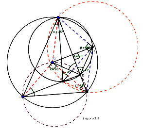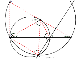 C. El hecho de que el triángulo BHA es rectángulo en H y que D es el punto medio de la hipotenusa, unido a las propiedades de la reflexión permiten concluir que: AD=DH=DF=DB lo cual conduce a que A, H, F y B pertenecen a la circunferencia con centro en D y diámetro AB. Lo cual sugiere construir dicha circunferencia (Fig. 2.2). Las propiedades de los ángulos en la circunferencia permite concluir que