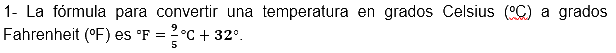 1- La fórmula para convertir una temperatura en grados Celsius (oC) a grados Fahrenheit (oF) es .