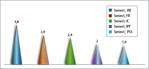 En algunos casos, a pesar de presentar dificultades para el reconocimiento y diferenciación de los grafemas, los pacientes eran capaces de escribir palabras de uso frecuente, por lo que el vocabulario básico (VB), la fonética regular (FR) y las irregularidades comunes (IC) estaban más conservados (Gráfico 2).