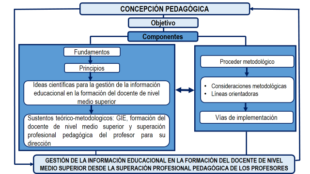 Los autores del presente artículo consideran que la concepción pedagógica dirigida a potenciar la gestión de la información educacional en la formación del docente de nivel medio superior es:
