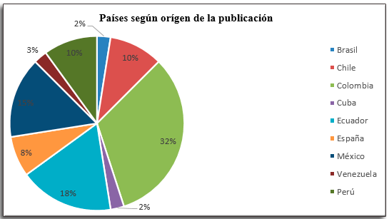 En la Figura 4, se analiza el origen de la publicación de los artículos, puesto que se tienen investigaciones limitadas de esta problemática, resulta interesante identificar qué países le han puesto más interés a este tema. Se encuentra que, de Perú, solamente se ha encontrado (4) resultados que se adapte al tema de estudio. Colombia (13), Ecuador (7), México (6), Chile (4), España (3), mientras que en países como Brasil, Cuba y Venezuela (1) fue seleccionado un estudio sobre el pensamiento creativo en la educación básica.