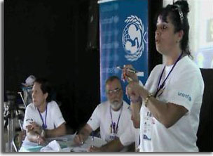La representante de UNICEF en Cuba Bregonia comparte una sesión de capacitación a los funcionarios, metodólogos y docentes de las comunidades contempladas en el proyecto. |