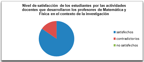 Al interpretar los resultados se pudo constatar que en el diagnóstico inicial se identificaron las siguientes potencialidades: los profesores consideran necesario el establecimiento de relaciones interdisciplinarias entre ambas asignaturas al resolver problemas de Matemática, reconocen la importancia de utilizar los procedimientos metodológicos para la resolución de problemas de Matemática con los contenidos físicos y los estudiantes están interesados en resolver problemas que interrelacionen estas dos asignaturas, se sentirían motivados por aprender.