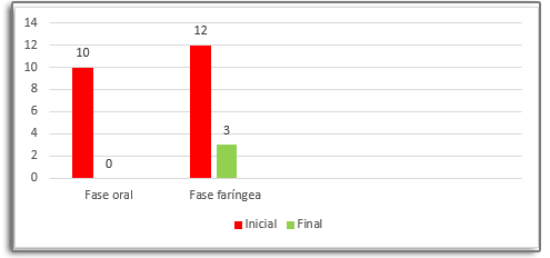 Fig. 1: Disfagia. Comparación antes y después de la aplicación del Programa de Atención Logopédica Integral