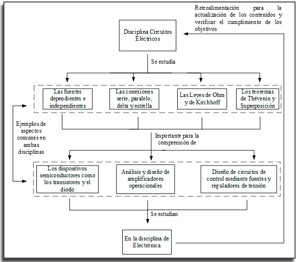 Figura 1. Relaciones interdisciplinarias básicas entre las disciplinas de Circuitos Eléctricos y Electrónica.