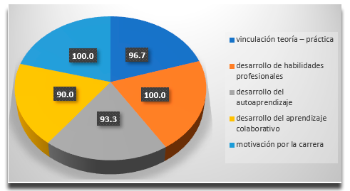 Para los estudiantes cuando cursaron el 2do año, se valoraron cinco aspectos fundamentales: vinculación teoría-práctica, desarrollo de habilidades profesionales, desarrollo del autoaprendizaje y el aprendizaje colaborativo y motivación por la carrera. El formulario que sirvió de guía para la realización de la entrevista fue estructurado de la forma siguiente: