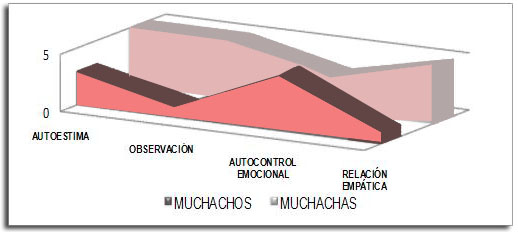 Las muchachas manifiestan, desde como se ven a si mismas, un alto desarrollo de esta habilidad en contraposición con los muchachos que declaran un nivel medio de desarrollo. En ese sentido las muchachas aprecian ser capaces de captar las intenciones y sentimientos del otro así como intuir cuando le están diciendo mentiras, lo que no sucede igual en el caso de los muchachos.