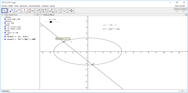 Figura 2: Solución en GeoGebra del ejemplo 2