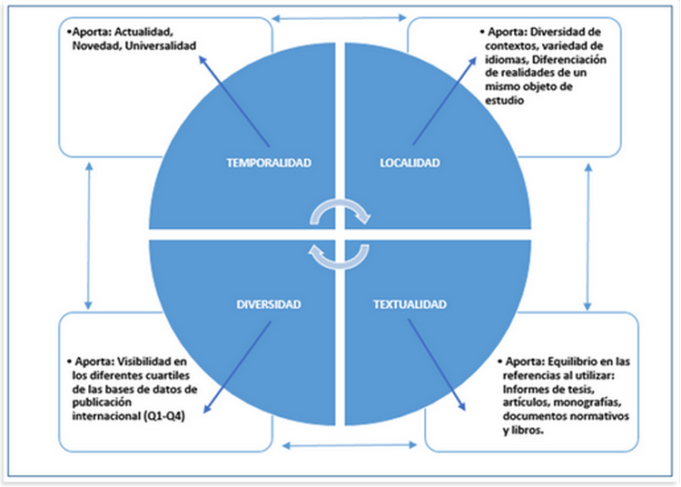 La diversidad, se introduce como elemento novedoso y actual atemperado las actuales exigencias de las principales instituciones de Educación Superior, las revistas electrónicas con ánimos de acceder a visibilidad Q1, los gremios de investigadores, los Grados Científicos y las plantas académicas de cada una de las maestrías y doctorados, imperativo, requisito o condición “sine qua non”, que hay que publicar en la Web of Science o Scopus, en el primer cuartil o el primer nivel como se conoce en diferentes espacios. Sin embargo, la propuesta de CESPE abre el diapasón en estos requisitos, ya que no solamente el primer nivel valida la calidad del Estado del Arte en un estudio por sus referencias bibliográficas: