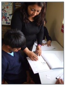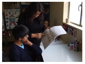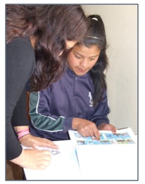 Foto 1: La Terapista de Lenguaje da una indicación o formula una pregunta. |