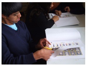 | Foto 3-4: El estudiante forma su respuesta utilizando campos semánticos diversos, en el ejercicio utilizó: pronombres, verbos y prendas de vestir. Cabe mencionar que no todos los educandos tienen el mismo desarrollo motriz, por tanto en otros casos, se utiliza el señalamiento a los pictogramas e ideogramas. Ver Foto 5. | |