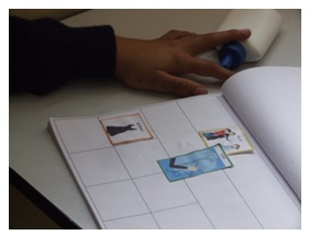 Foto 5: Cuando el desarrollo motriz no es óptimo, la guía se utiliza mediante señalamiento de pictogramas e ideogramas. |