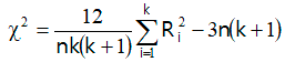 La hipótesis nula () en el ANOVA de Friedman como prueba de significancia para el coeficiente de concordancia de Kendall, se expresó de la manera siguiente: