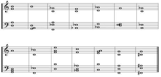 Los sonidos siguientes: F, G, A, Bb, D, Db, F# y D#.
