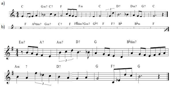 14. Complete el plan de armonización de las melodías siguientes donde se indica con acordes sustitutos y funcionales.
