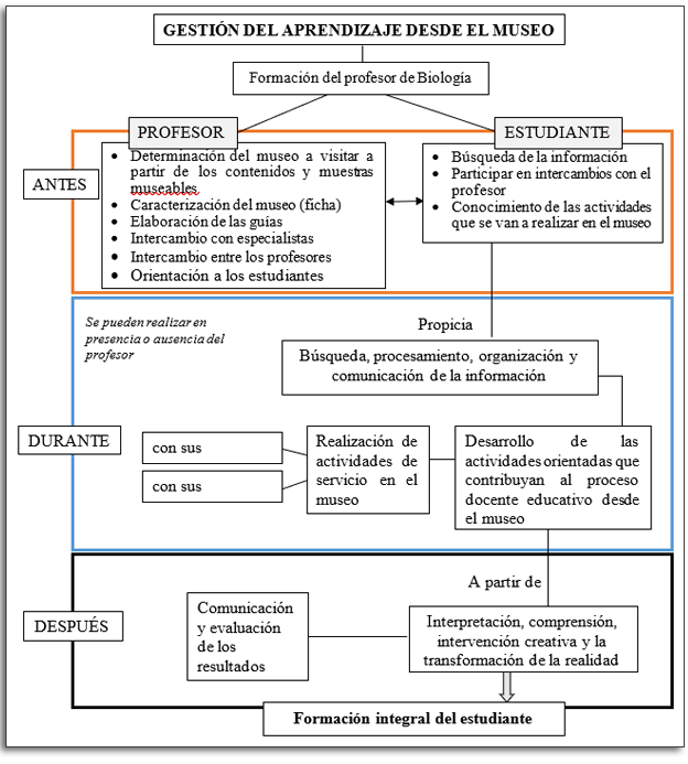 Estos aspectos han de ser considerados en la gestión del aprendizaje desde el museo en los estudiantes de la Licenciatura en Educación. Biología, como parte de la formación integral de los futuros profesionales de la educación.