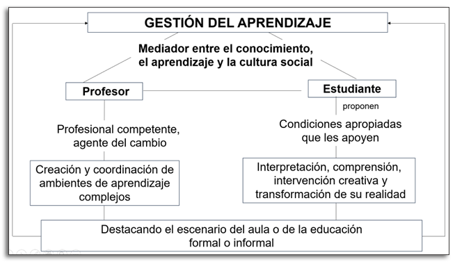 Al respecto, Medina et al. (2023) sostienen que la gestión de aprendizaje es “… un conjunto de construcción del propio estudiante en el medio o en el contexto que vive teniendo en cuenta su realidad y a su vez se presenta un problema y se convierte en una necesidad” (p. 745). Además, reconocen que involucra que el maestro sea capaz de motivar con una dirección apropiada de los procesos y de implicar al estudiante para que obtenga lo principal desde sus propias elecciones (p. 746).