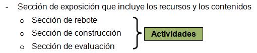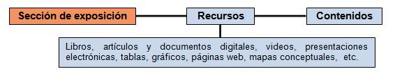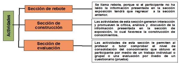 Para una mejor comprensión del bloque académico, se explica el contenido de cada una de las secciones que lo integran, en la figura 2 la sección de exposición y la figura 3 sobre las actividades.
