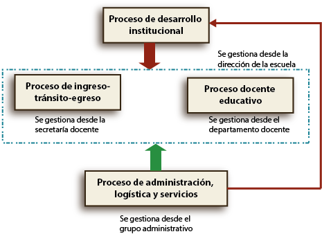 Entre estos procesos se establece un conjunto de relaciones desde su relación con la misión de la escuela, que tiene una primera representación, cuyas relaciones tienen un carácter más general.