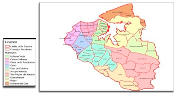 -En la cuenca están ubicados total o parcialmente 10 municipios: Habana Vieja, Centro Habana, 10 de Octubre, Boyeros, Arroyo Naranjo, El Cerro,