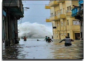 Fig. 2.- Personas transitando por la calle San Lázaro durante inundación costera, mientras ocurría una surgencia, evidencia de la no percepción del peligro.