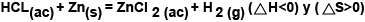 Un ejemplo de un sistema que experimenta cambio de entalpía y entropía es la reacción entre el ácido clorhídrico y el cinc sólido que producen cloruro de cinc acuoso y dihidrogeno gaseoso. Se puede comprobar que hay un cambio en la energía calorífica durante este proceso, manteniendo simplemente en la mano en el tubo de ensayo mientras se añade el cinc sólido; la liberación de energía en forma de calor por el sistema es evidente. Por consiguiente, este proceso es exotérmico y la variación de entalpía (H) es bastante grande y negativa. Además, puesto que se produce un gas irá acompañado de un aumento de entropía, que será bastante grande y positivo o sea: