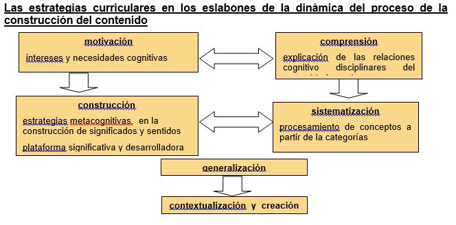 Por lo tanto, en el proceso de la construcción del contenido de la formación, apoyada en la lógica hermenéutico-dialéctica de las estrategias de enseñanza-aprendizaje, deben considerarse las avenidas de sentido previsibles en la discusión de la lógica del pensamiento académico-creativo de los estudiantes, para que los resultados, sometidos a juicios y valoraciones, revelen la naturaleza perspectivo-contextual del contenido que se construye, como dinámica que activa los procesos de aprendizaje y apropiación de la cultura construida en el devenir humano considerada como patrimonio.