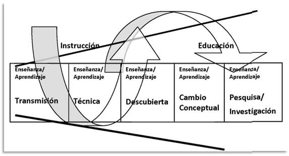 Enseñanza por Pesquisa: Esta perspectiva considera la motivación para aprender como la respuesta a los intereses cotidianos de los alumnos, personal, social y culturalmente. Los contenidos asumen un papel fundamental en el ejercicio de pensar y comprender el mundo, valorizando la educación, más que la instrucción.