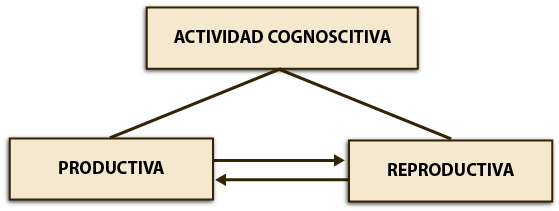 La actividad cognoscitiva reproductiva es valiosa y, como apoyatura, prepara las condiciones para ir transitando hacia la producción cognoscitiva. Por su parte, la actividad cognoscitiva productiva, en íntima relación con la actividad cognoscitiva reproductiva, constituye el tipo de actividad cognoscitiva caracterizada por la capacidad del sujeto de asimilar, transformar y aplicar los conocimientos adquiridos a nuevas situaciones de manera independiente y original, teniendo en cuenta sus vivencias y las características de su personalidad; por eso, hay autores que denominan creadora a este tipo o grado de actividad cognoscitiva.