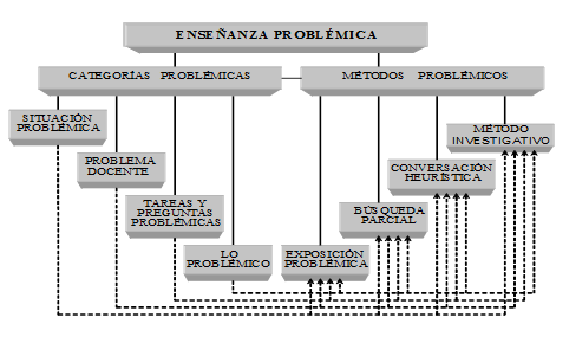 Figura 2. Relación entre las categorías y los métodos de la enseñanza problémica. Tomado de Hernández, J. L., 1997.