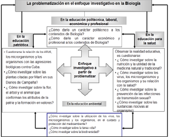 Figura 3. El enfoque investigativo en la enseñanza de las disciplinas biológicas. Tomado de Delgado, M.I., 2004